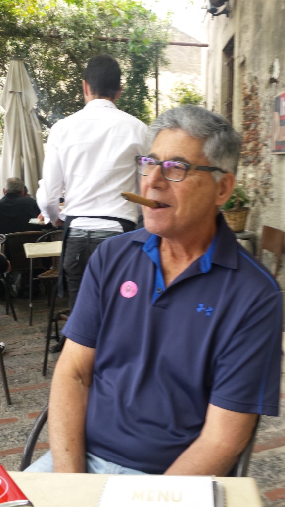In 2019 my husband, Bob, myself and neighbors, Joan and Jodie travel to Italy and cruised on the Azama Pursuit. We docked in Taormina, Sicily and took an an excursion to Savoca, The Footsteps of the Godfather, where Francis Ford Coppola shot scenes for Godfather II. The cafe is now a tourist attraction where you can drink espresso and smoke a cigar.