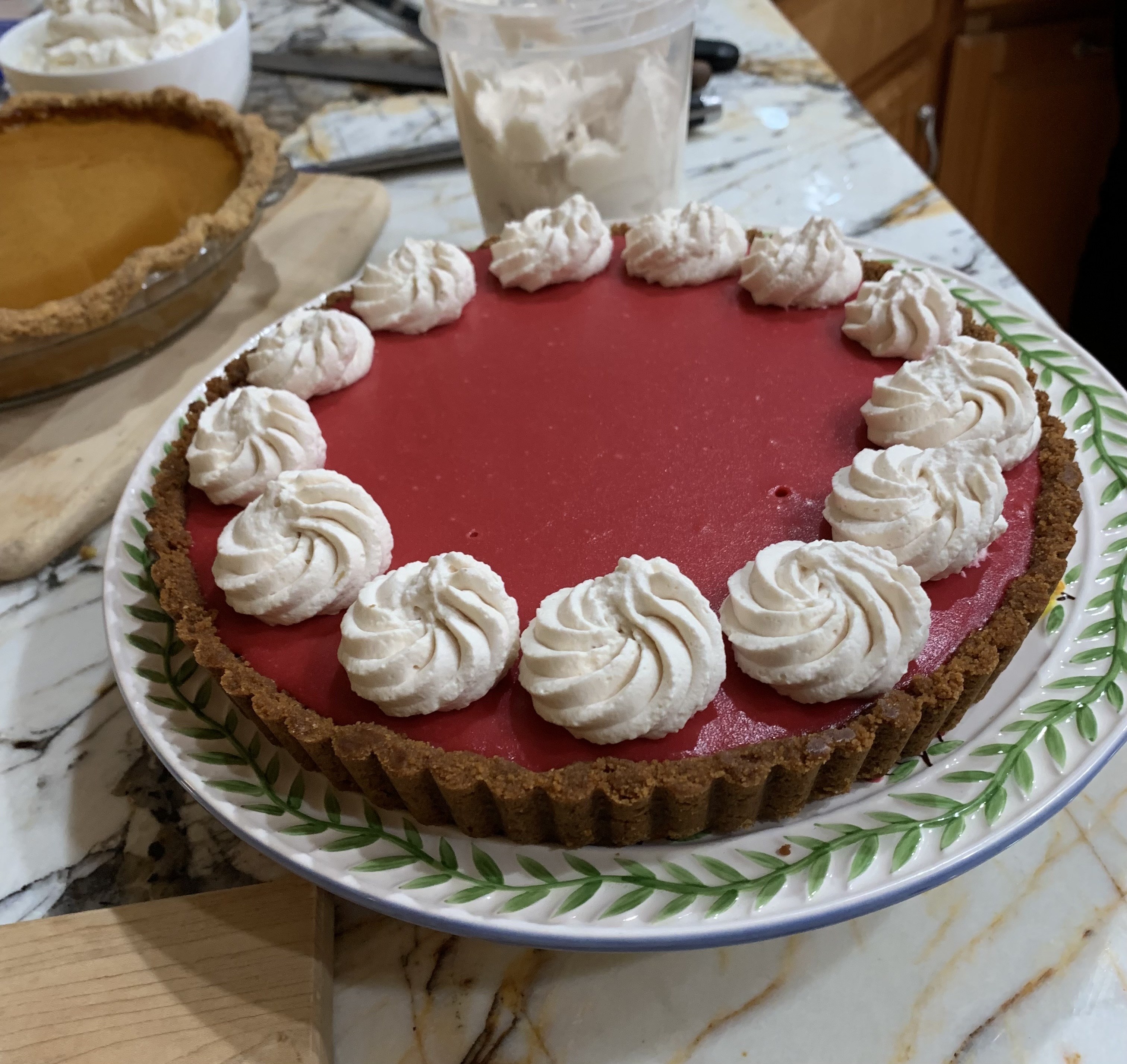 The pie and tart look delicious! That’s of course the advantage of lots of guests around the table.